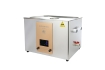 通過(guò)換能器,將功率超聲頻源的聲能轉(zhuǎn)換成機(jī)械振動(dòng),通過(guò)清洗槽壁將超聲波輻射到槽子中的清洗液。由于受到超聲波的輻射,槽內(nèi)液體中的微氣泡能夠在聲波的作用下快速變大破裂,破裂時(shí)產(chǎn)生的高強(qiáng)度剪切力作用于各類樣品上,從而達(dá)到清洗、提取、乳化、加速溶解、粉碎、分散等作用。
